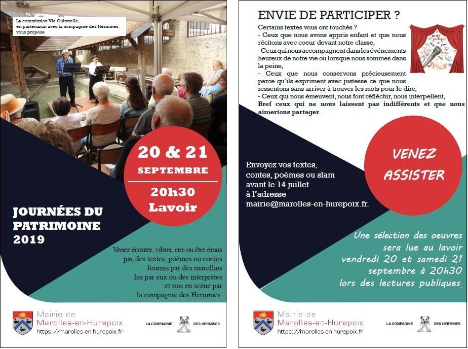 La commission Vie Culturelle de Marolles-en-Hurepoix, en partenariat avec la Compagnie des Hermines, vous propose de participer à des lectures théâtralisées.